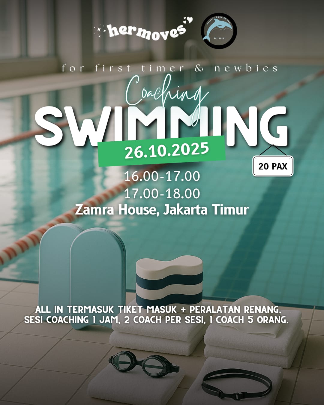 🌊✨ Coaching Swimming – For First Timer & Newbies ✨🌊 πŸ“… 26 Oktober 2025 πŸ•’ Sesi 1: 16.00–17.00 πŸ“Zamra House