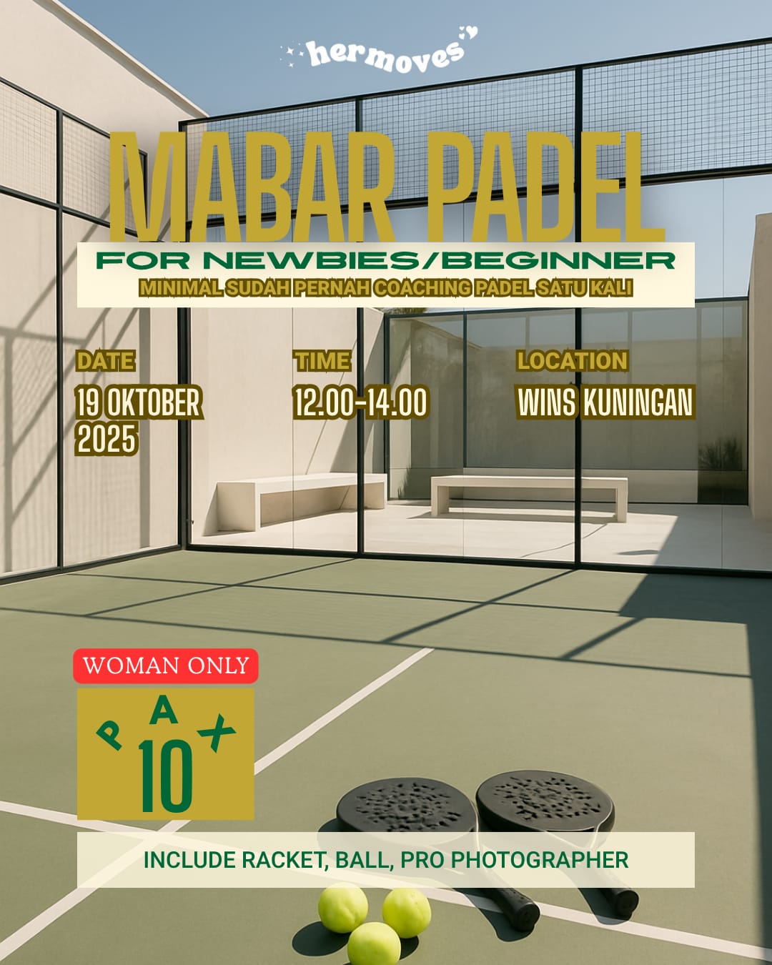 Rasakan pengalaman padel siang hari dengan suasana minimalis, elegan, dan penuh energi positif bersama Her Moves πΏ
