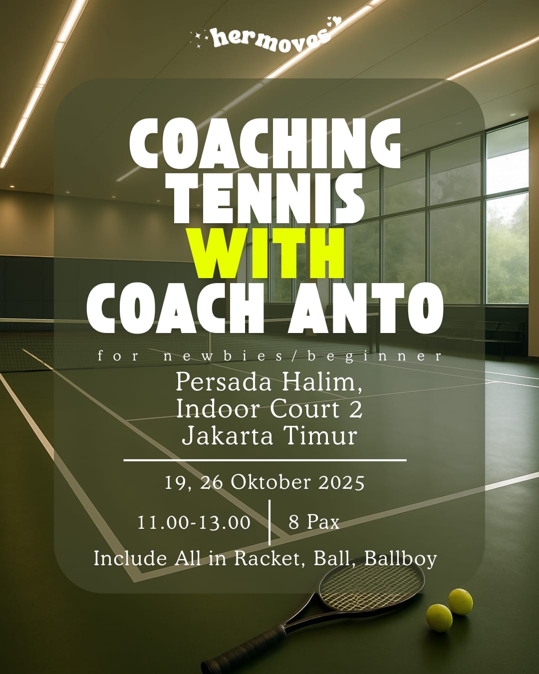 Her Moves Indonesia hadirkan Coaching Tennis with Coach Anto khusus untuk kamu yang ingin upgrade skill dari basic dengan cara fun dan efektif.