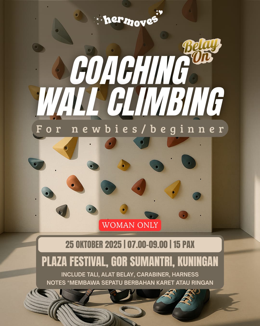 [JAKARTA SELATAN] 🧗♀️ Coaching Wall Climbing – Belay On! WOMAN ONLY Oct 25 7:00 am - 9:00 pm [JAKARTA SELATAN] 🧗♀️ Coaching Wall Climbing – Belay On! WOMAN ONLY Rp155.000,00