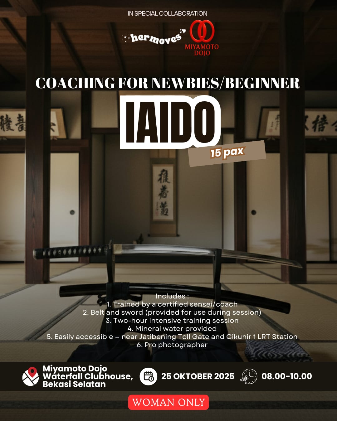 [BEKASI SELATAN] ✨ COACHING FOR NEWBIES/BEGINNER – IAIDO ✨ Women Only Oct 25 8:00 am - 11:00 am [BEKASI SELATAN] ✨ COACHING FOR NEWBIES/BEGINNER – IAIDO ✨ Women Only Rp220.000,00