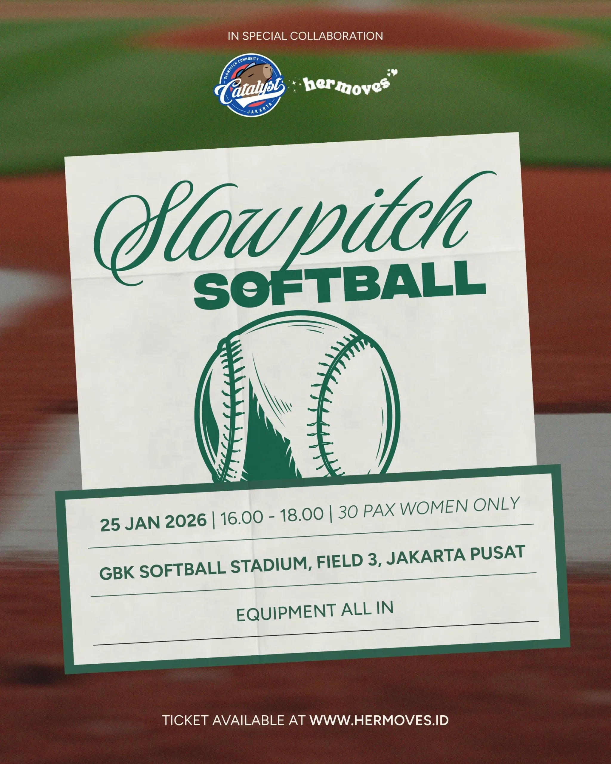 [JAKARTA PUSAT] 🥎 Coaching for First Timer–Beginner session Slowpitch Softball — Her Moves x Catalyst Women Only