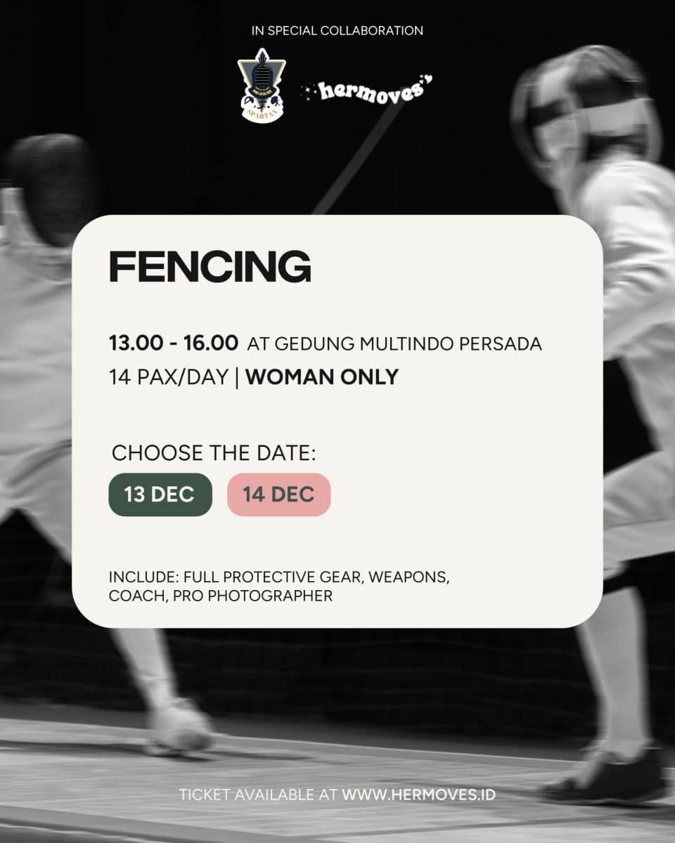 Kelas ini dirancang khusus agar kamu bisa belajar teknik fencing dengan elegan dan percaya diri!