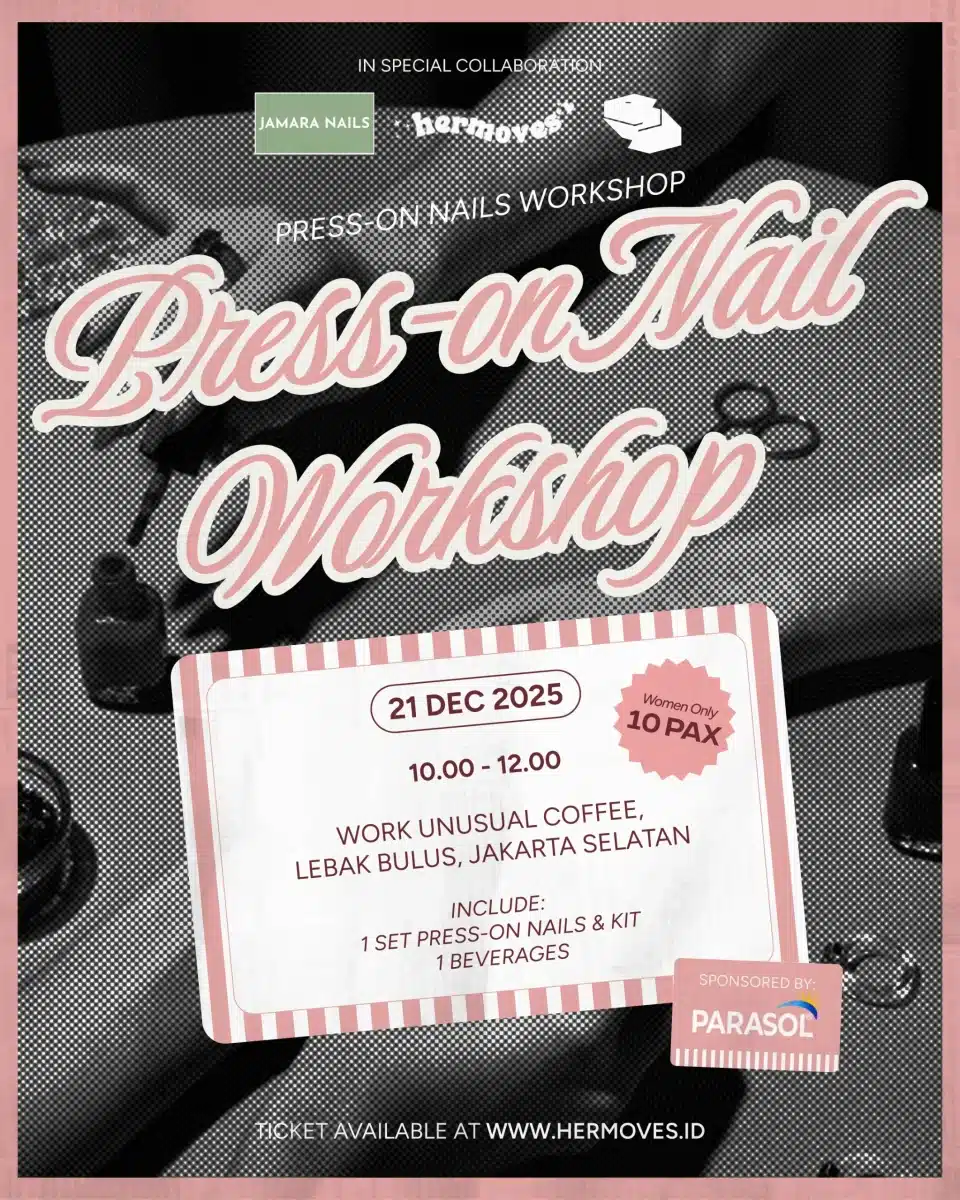 Join our women-only Press-On Nails Workshop β design your own cute nail sets, learn easy hacks, and have the best glam-day ever. All materials ready, just bring your vibes!