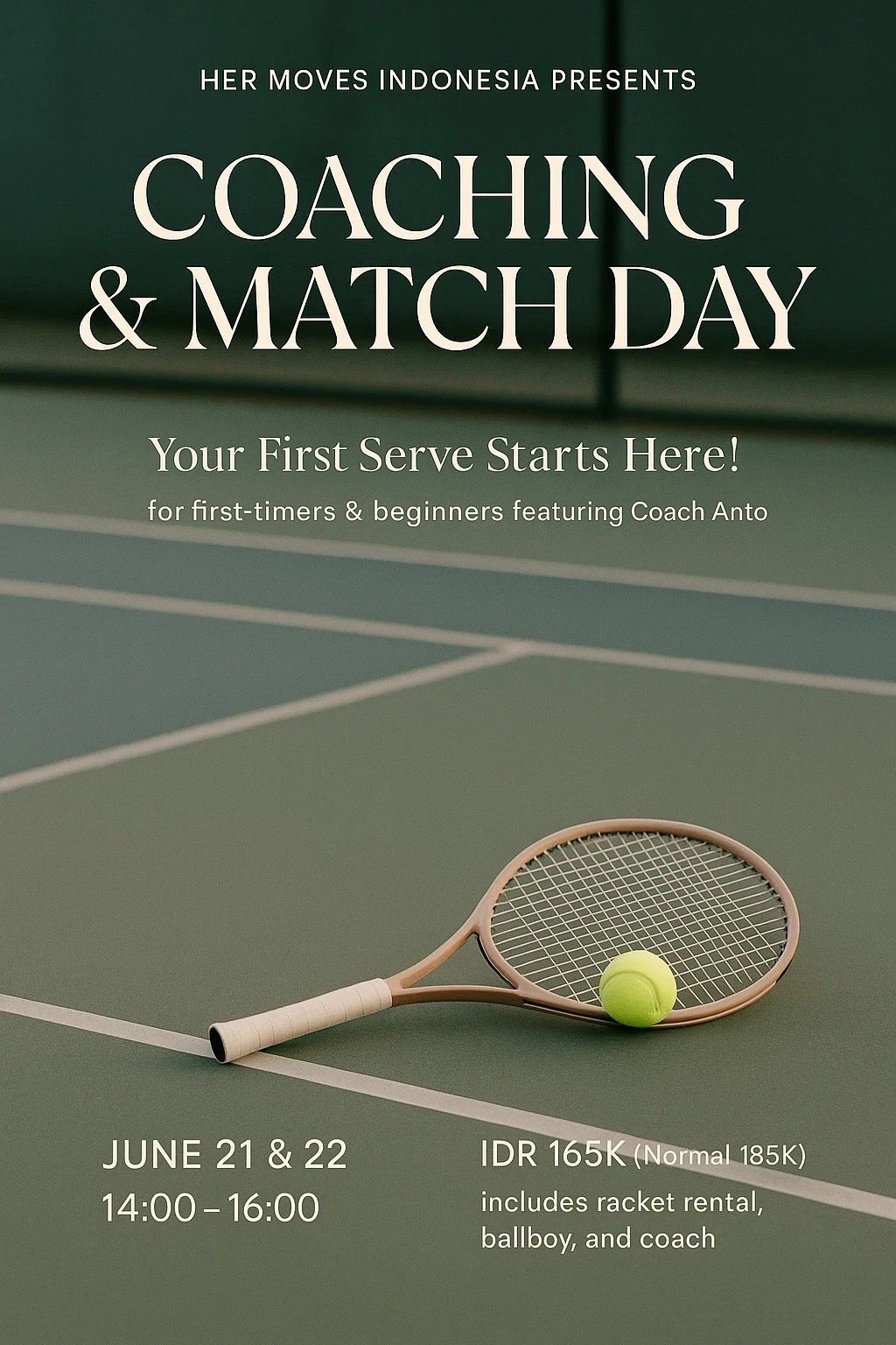 πΈ IDR 165K (Normal 185K) β includes racket rental, ballboy & coach!