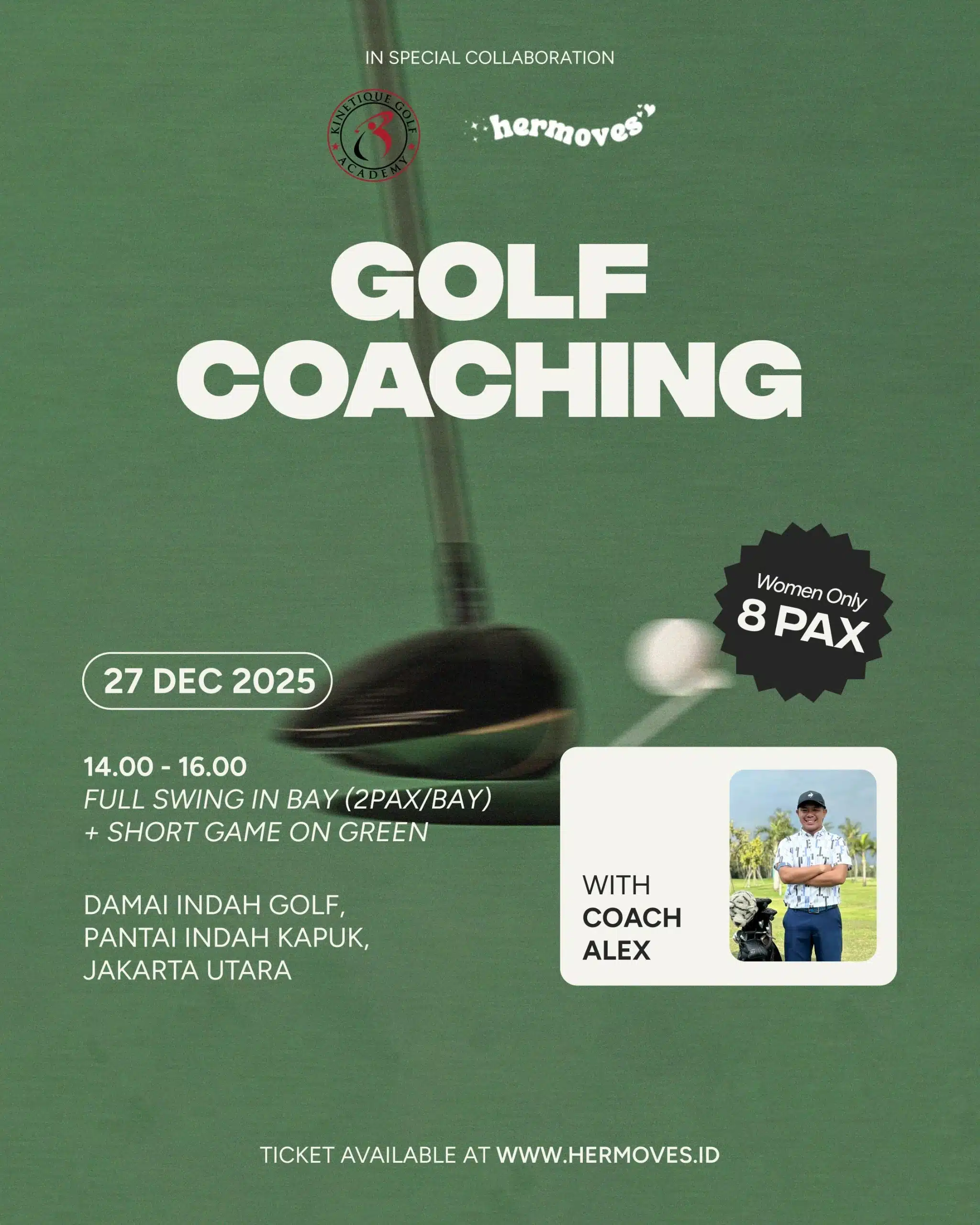 [JAKARTA UTARA] Women-Only Full Swing Golf Coaching Dec 27 2:00 pm - 4:00 pm [JAKARTA UTARA] Women-Only Full Swing Golf Coaching Get Tickets Rp295.000,00 8 tickets left