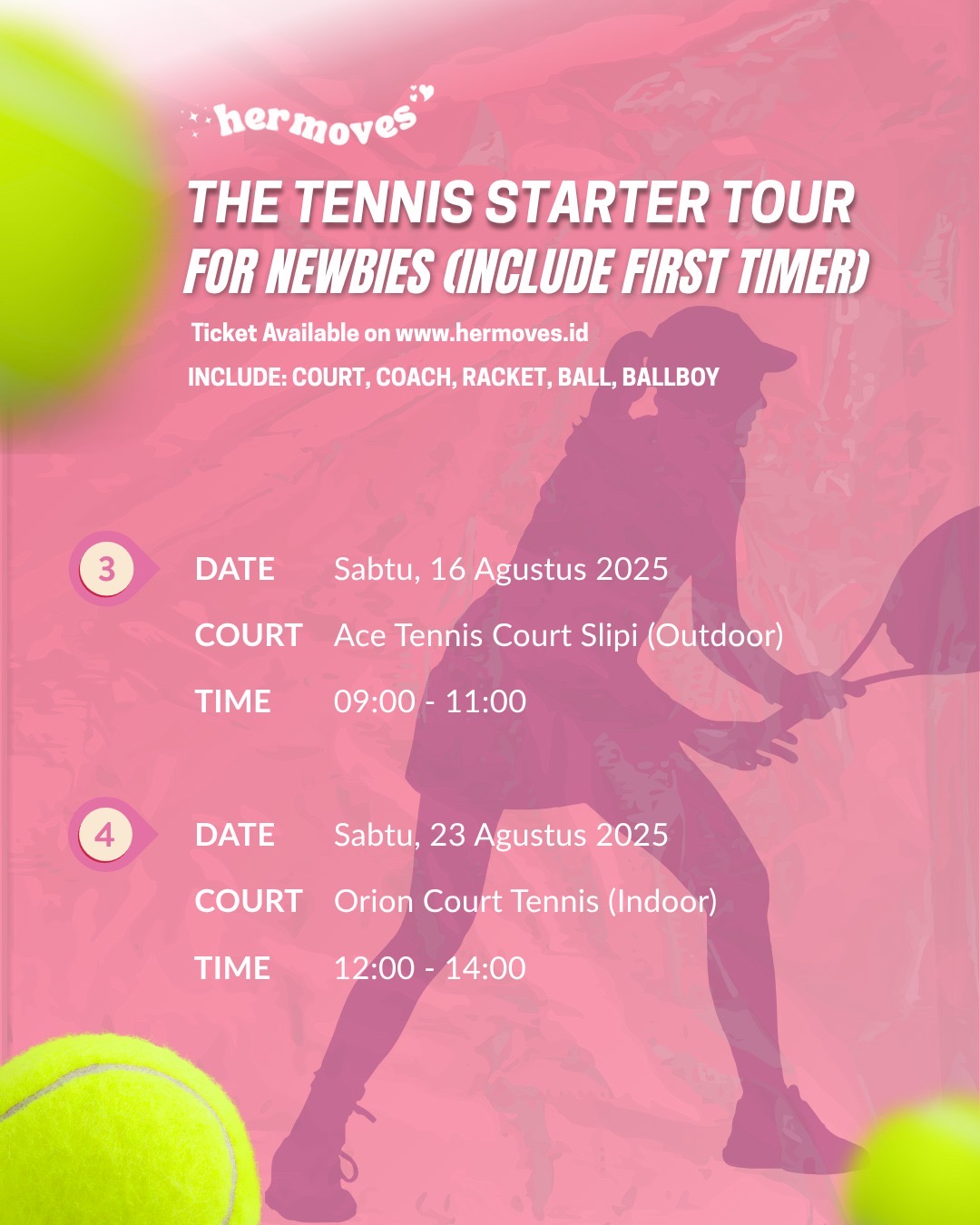 Orion Court Tennis (Indoor) Jl. M. Saidi Raya No.13-14, RT.1/RW.5, Petukangan Sel., Kec. Pesanggrahan, Kota Jakarta Selatan, Daerah Khusus Ibukota Jakarta 12270, Indonesia🎾 The Tennis Starter Tour for Newbies Day#3 Baru mulai main tenis atau masih newbie? This one's for you! Her Moves present tur coaching tenis khusus […]